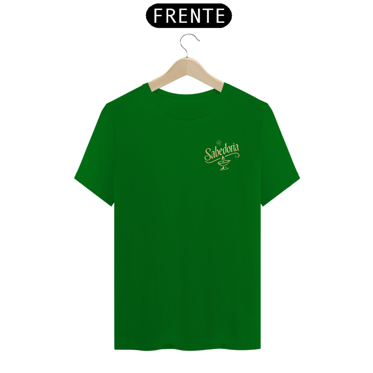 Carregue a luz da sabedoria sempre próxima ao coração com essa camiseta de design discreto. A lâmpada acesa simboliza o brilho do conhecimento e da clareza espiritual, perfeita para quem busca expressar sua fé de forma sutil e elegante.