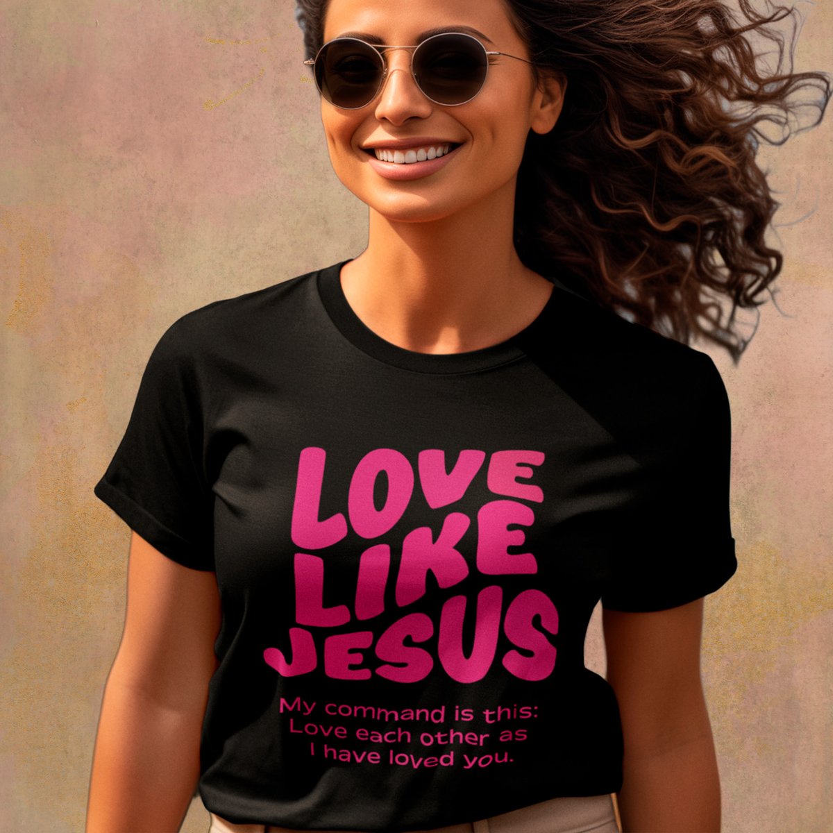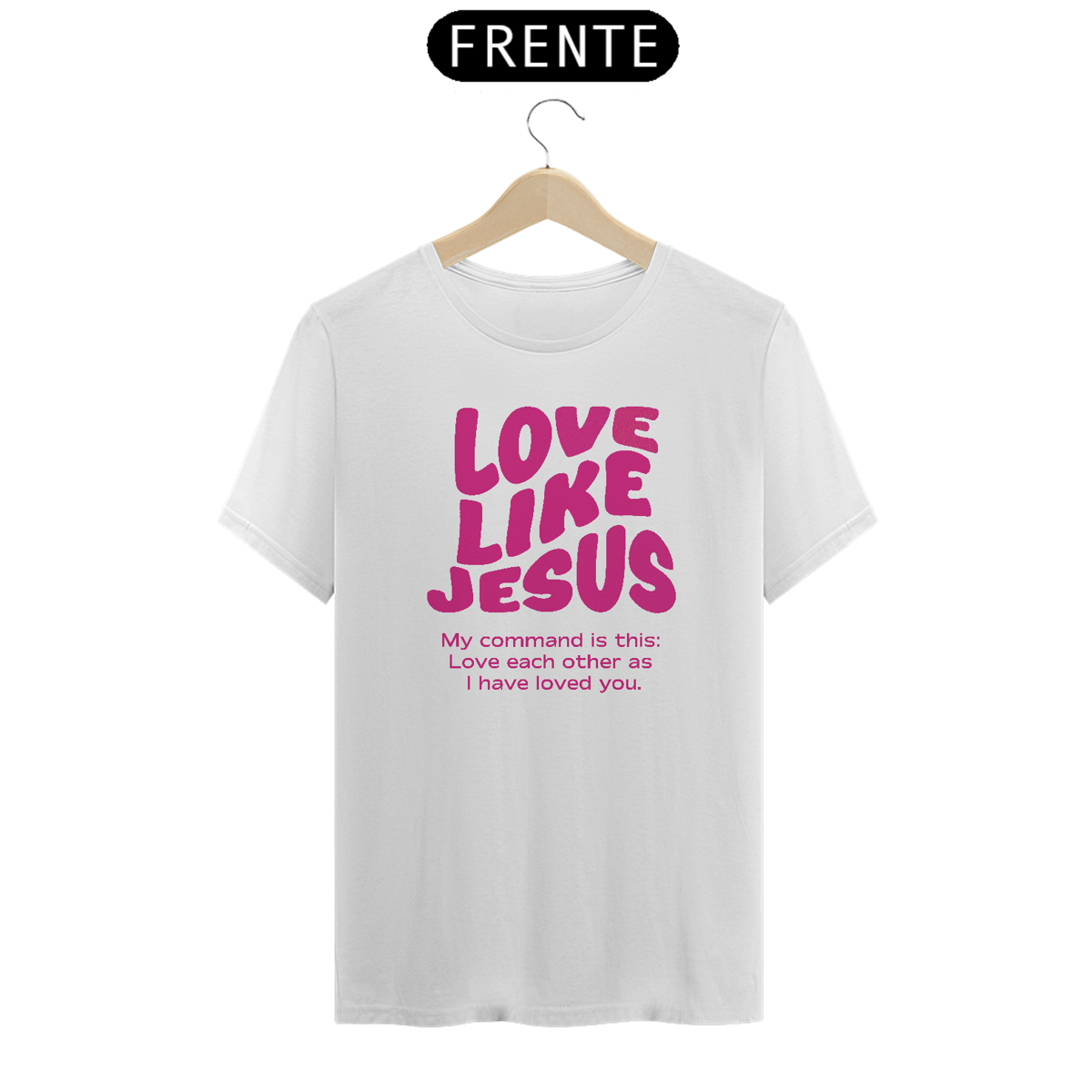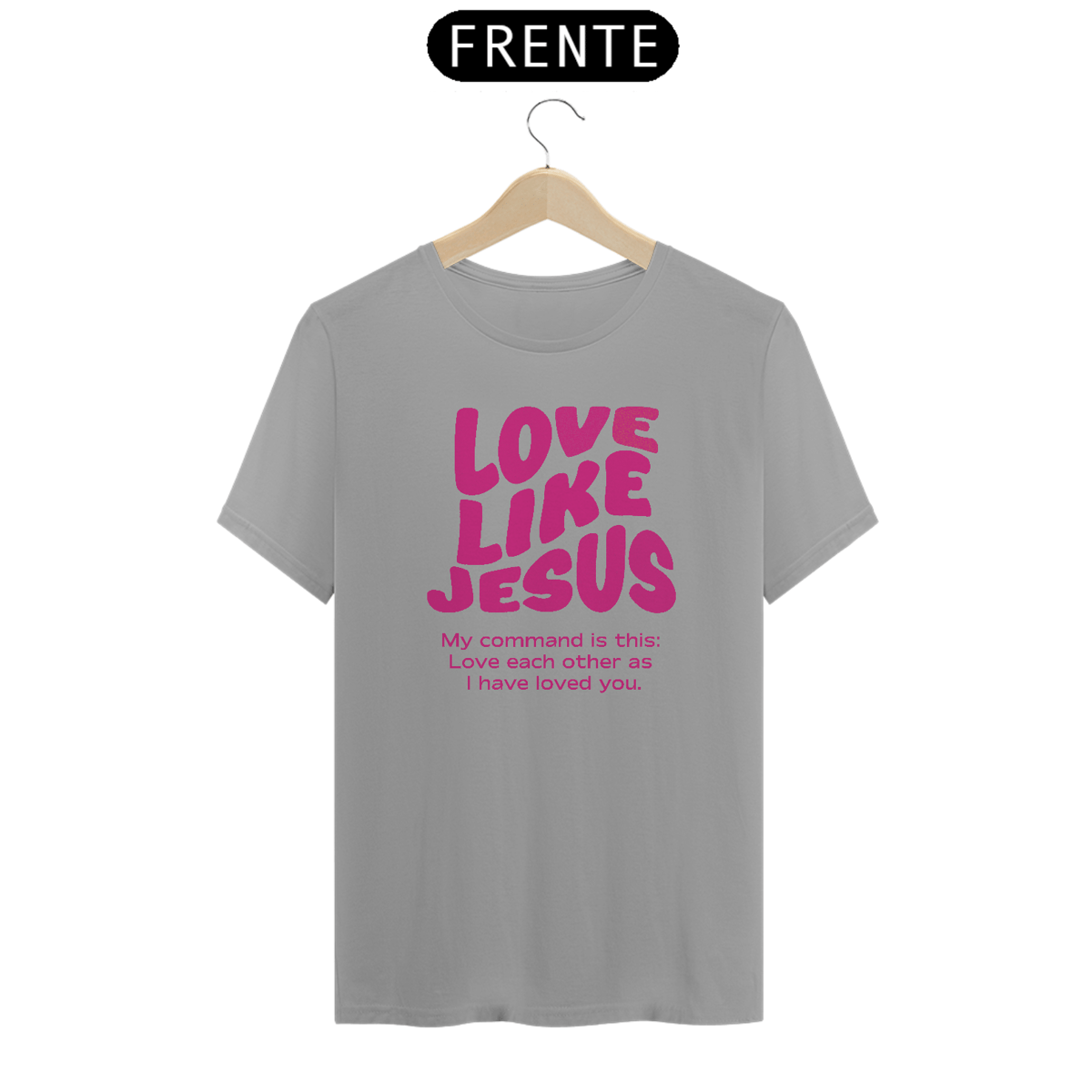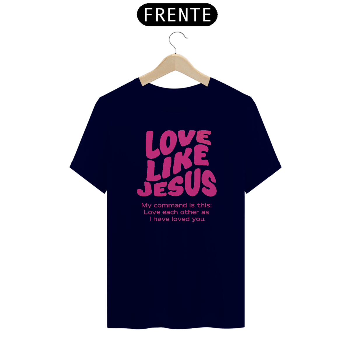 Vista sua fé com estilo! A camiseta "Love Like Jesus" traz o versículo João 15:12 em um design moderno, com tipografia exclusiva que destaca a mensagem de amor. Feita com tecido macio e durável, é ideal para quem quer expressar sua fé de forma autêntica no dia a dia.